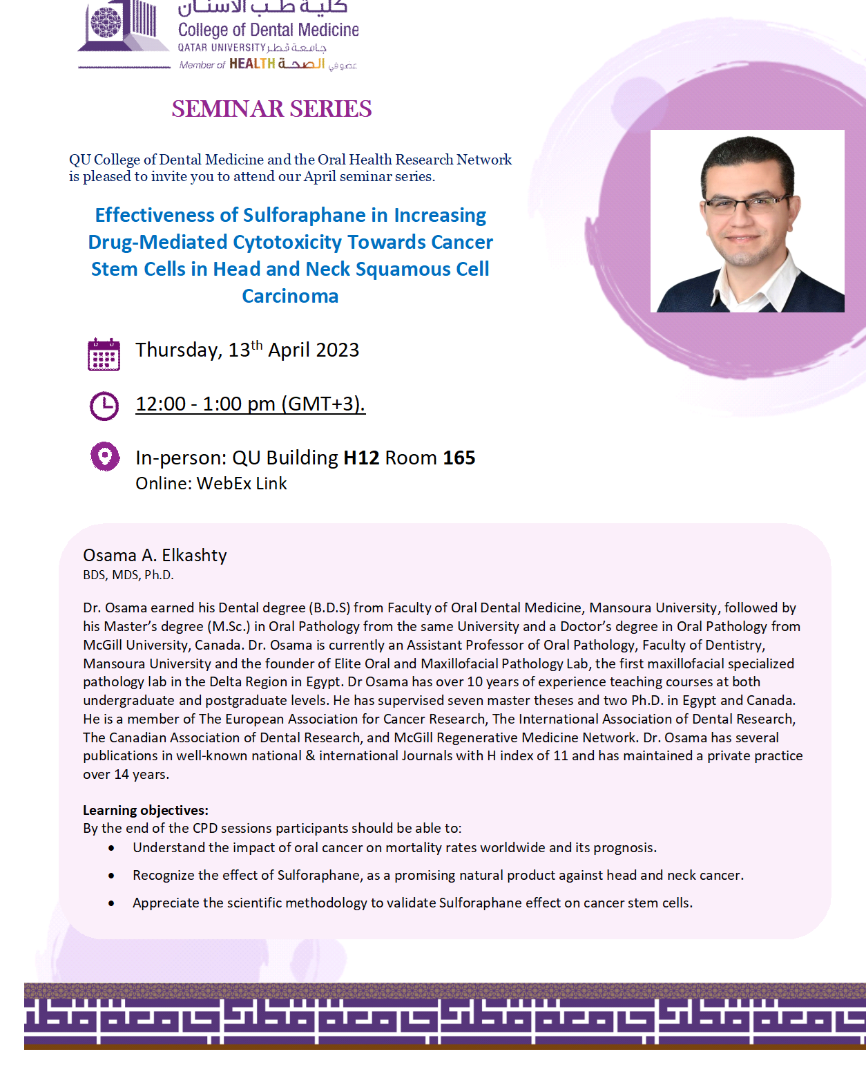 | 13 April 2023 | Dr. Manal Matoug | Dr. Osama A. Elkashty |