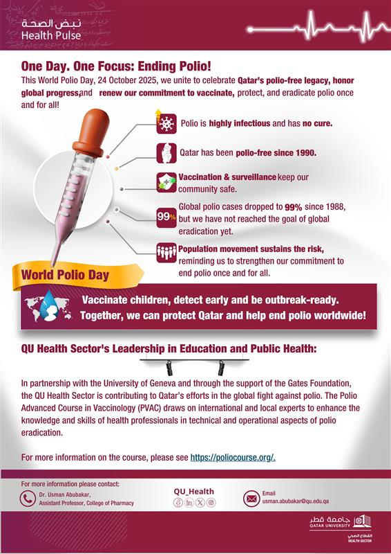 This World Polio Day, 24 October 2025, we unite to celebrate Qatar’s polio-free legacy, honor global progress, and renew our commitment to vaccinate, protect, and eradicate polio once and for all.