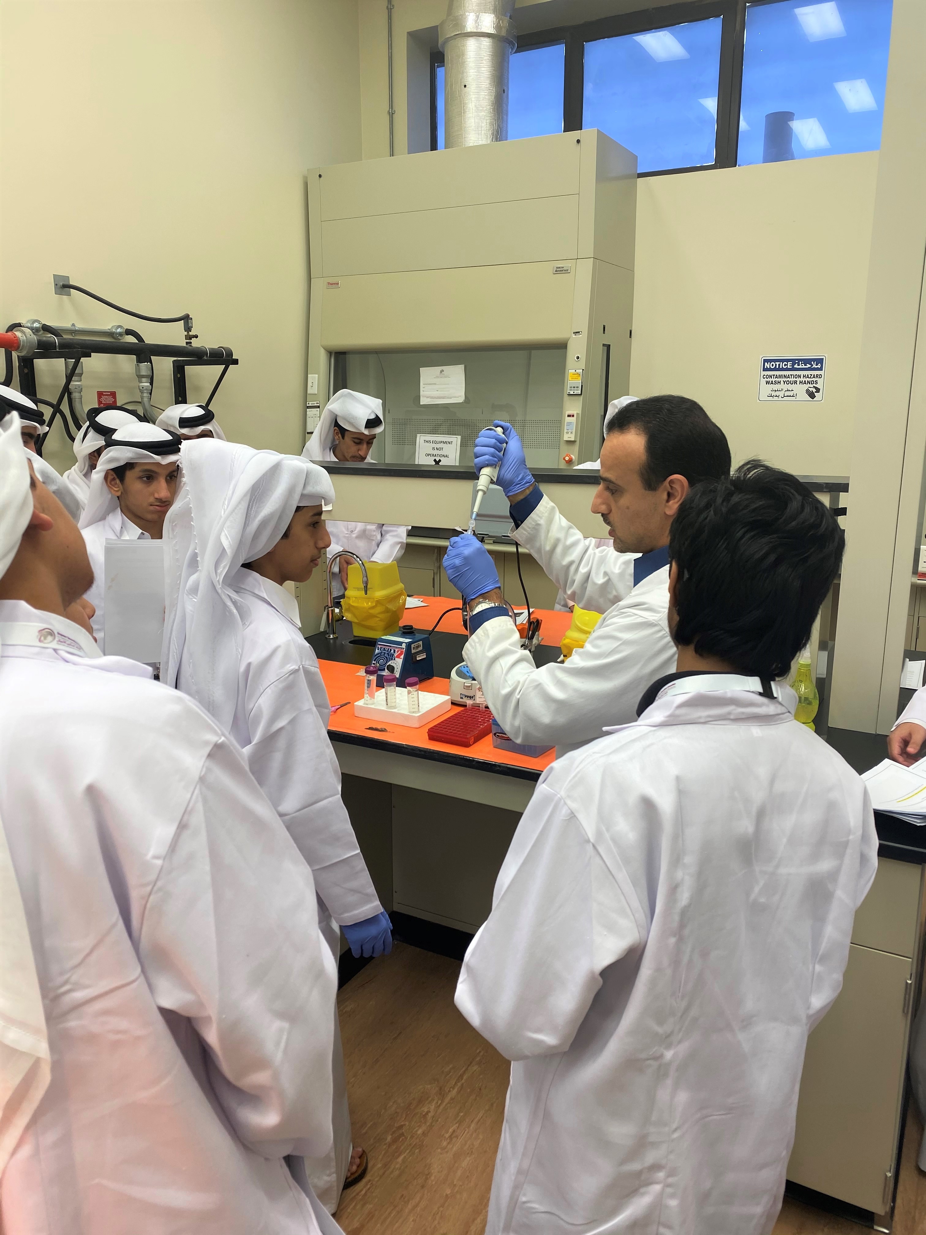 Qatar Academy for Science and Technology students had a visit to BRC facilities. Twelve student of grade 10 had the opportunity to investigate antibiotic resistance problem. They had hands-on demonstration with interactive 2-hour BRC Microbiology lab visit session prepared and lead by Dr. Susu Zughaier (CMED) and participation of Mr. Hassan Al-Manai and Mr. Hashim (BRC). Students also visit QU campus (bus tour), library and CMED anatomy museum. Students learned about the problem of antibiotic resistance; practiced how to investigate antibiotic resistance and discussed potential solutions. Students also learned about educational opportunities at QU colleges and library facility.